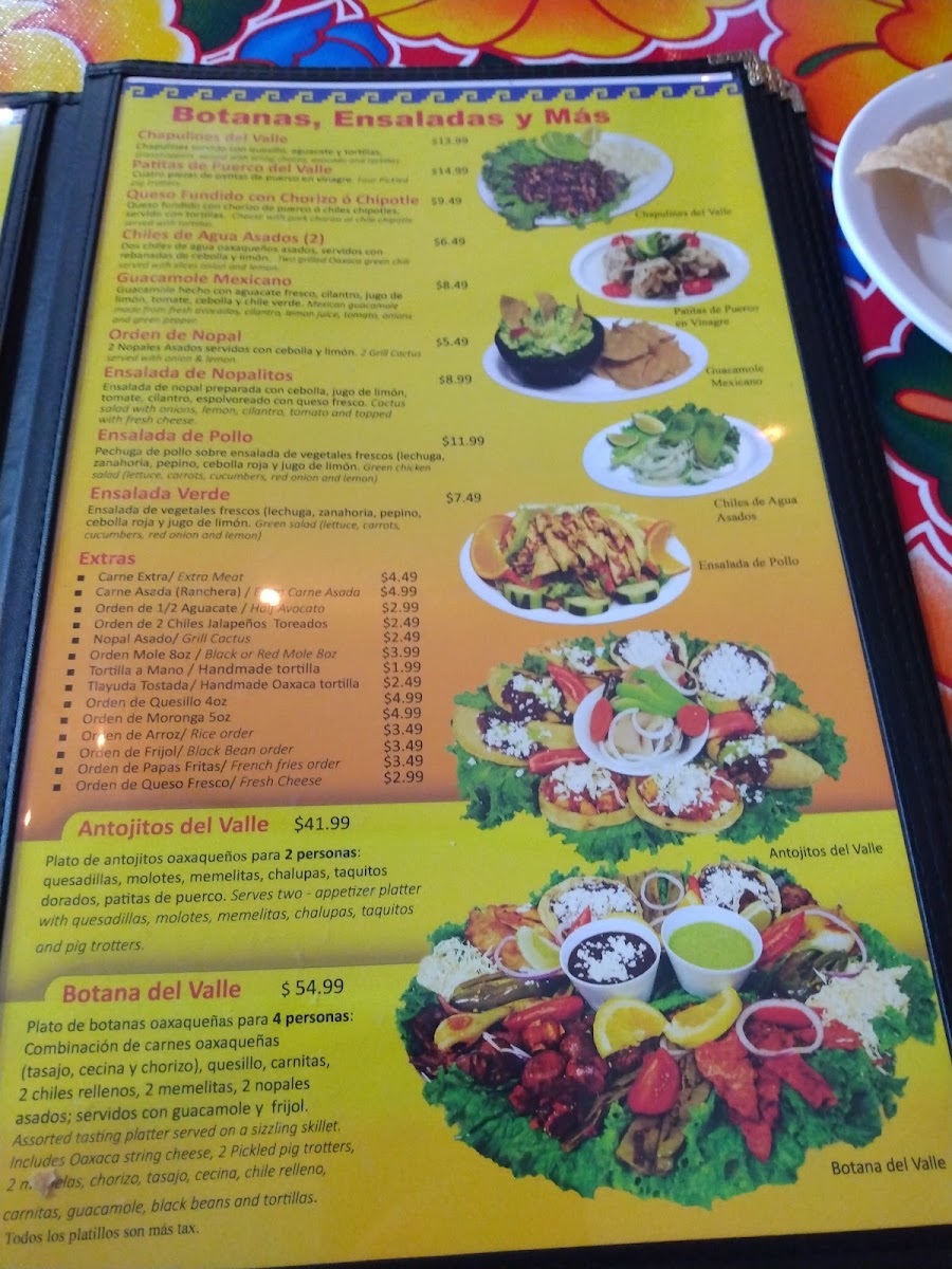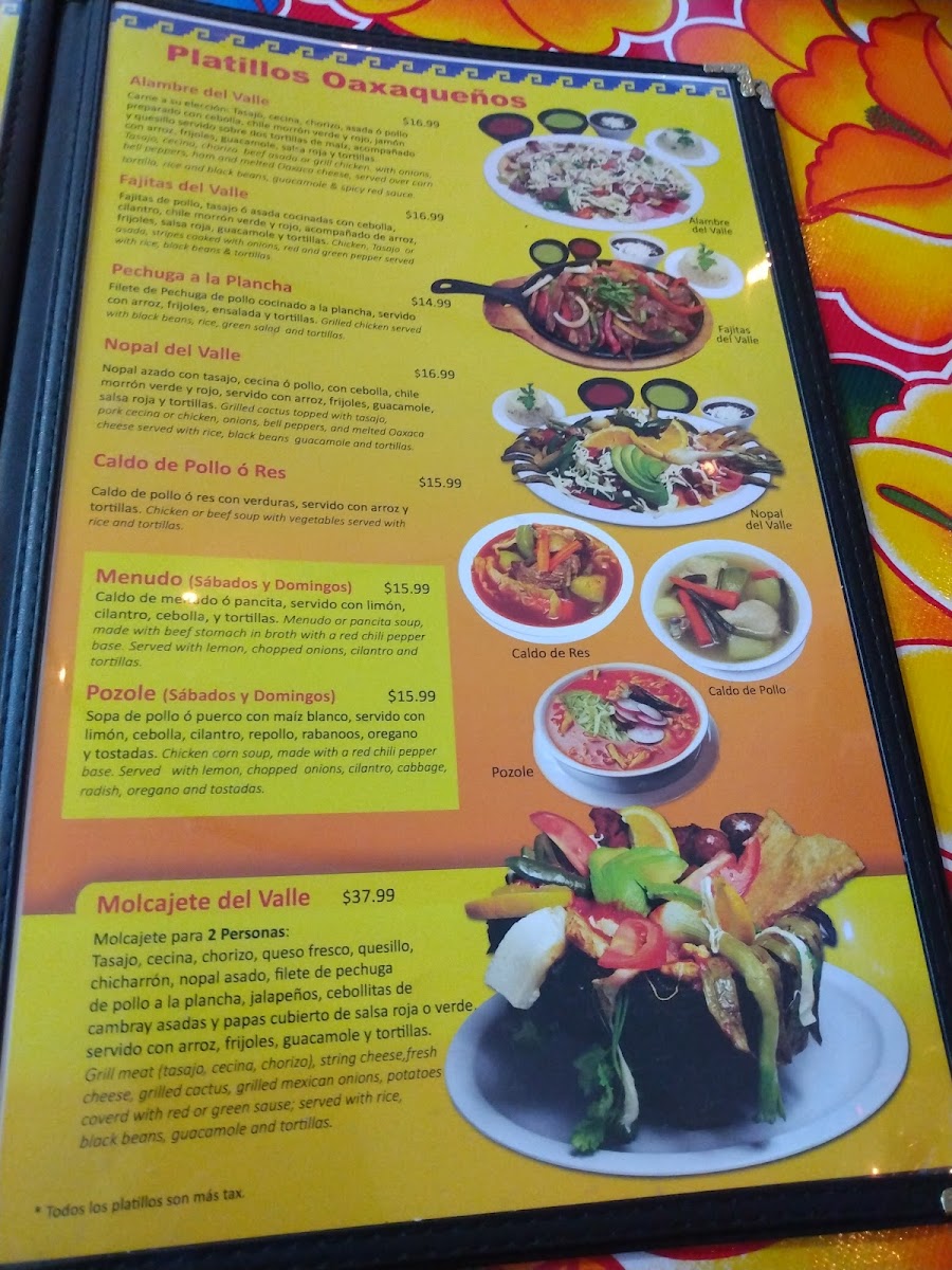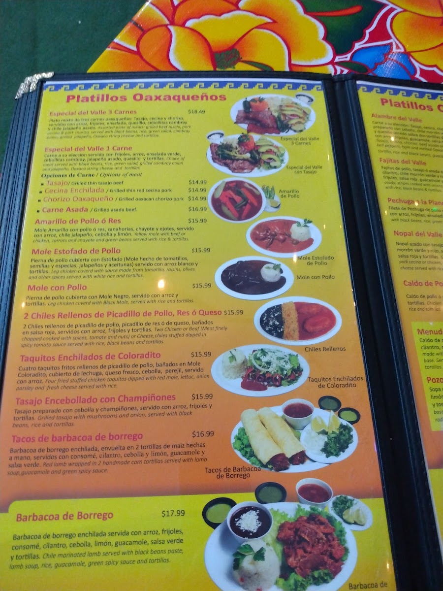 El Valle Oaxaqueno Menu