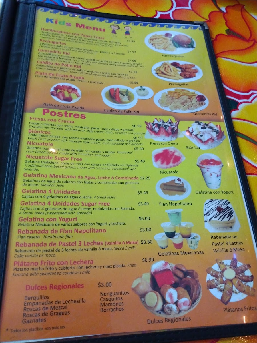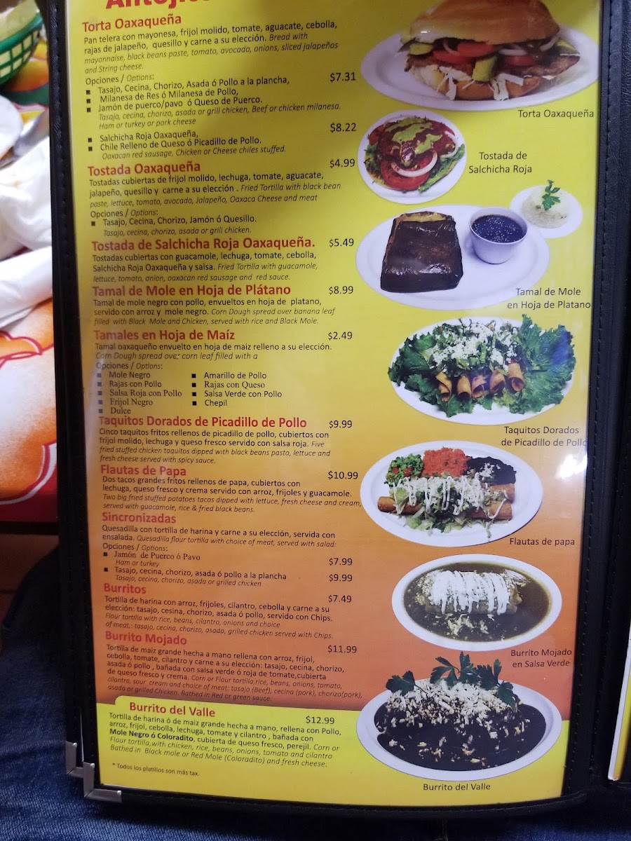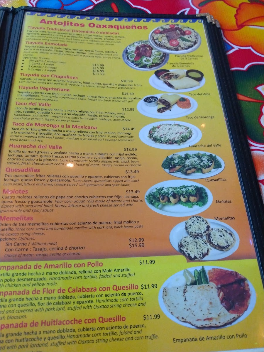 El Valle Oaxaqueno Menu